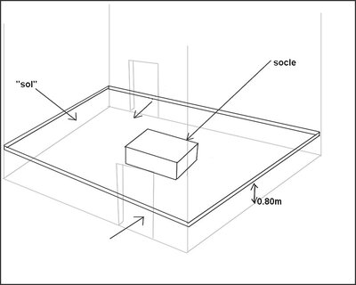 Installation, socle blanc et ’sol’ surélevé de 0.80 m. Projet en cours, 2021
